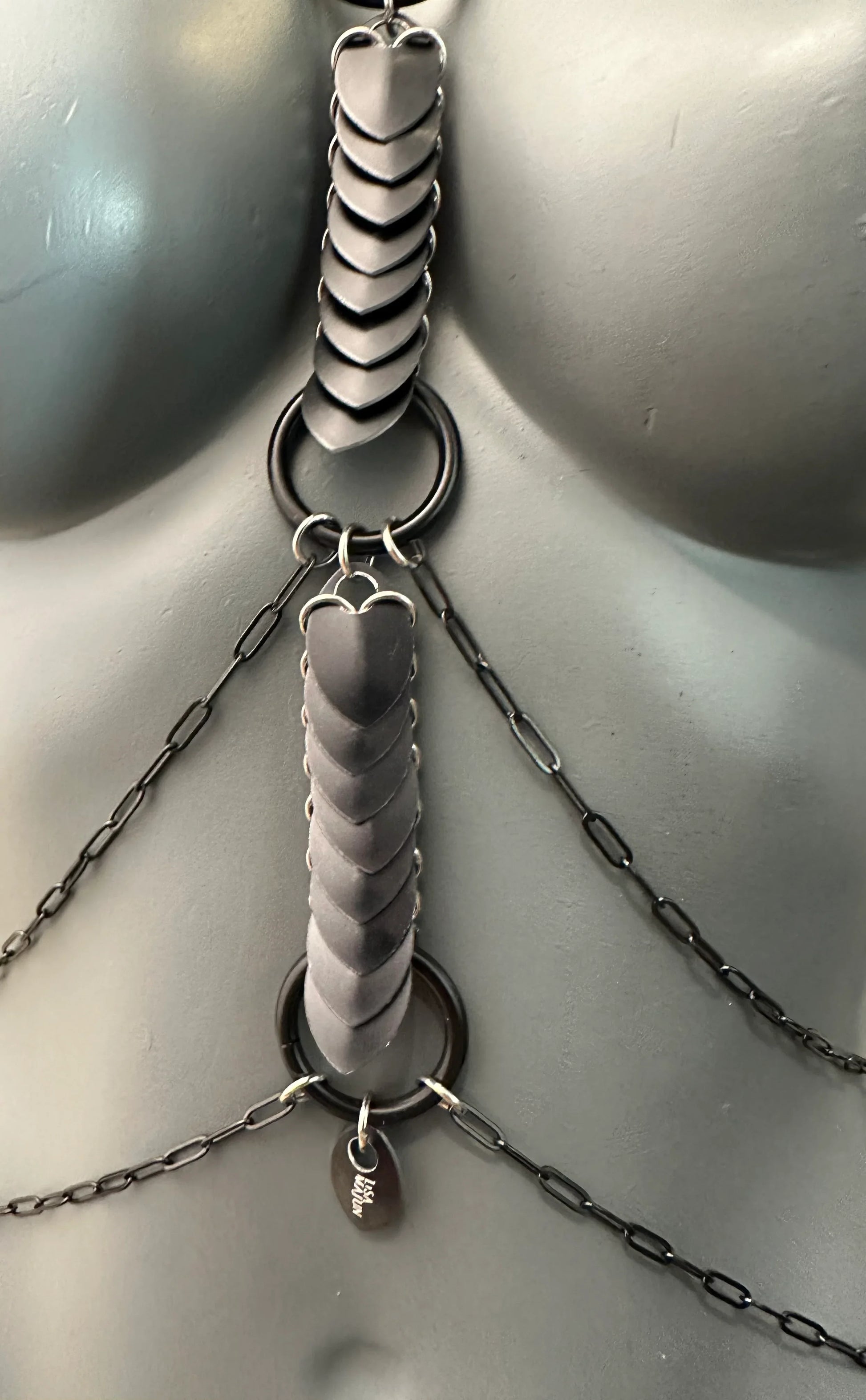 Göttliche Eleganz – Die VENUS Bodychain verkörpert Schönheit, Selbstbewusstsein und zeitlose Anziehungskraft. Inspiriert von der Göttin der Liebe wird sie aus hochwertigem Edelstahl handgefertigt und legt sich anmutig über deinen Körper, sodass jede Bewegung durch feinen Glanz und subtile Stärke betont wird.