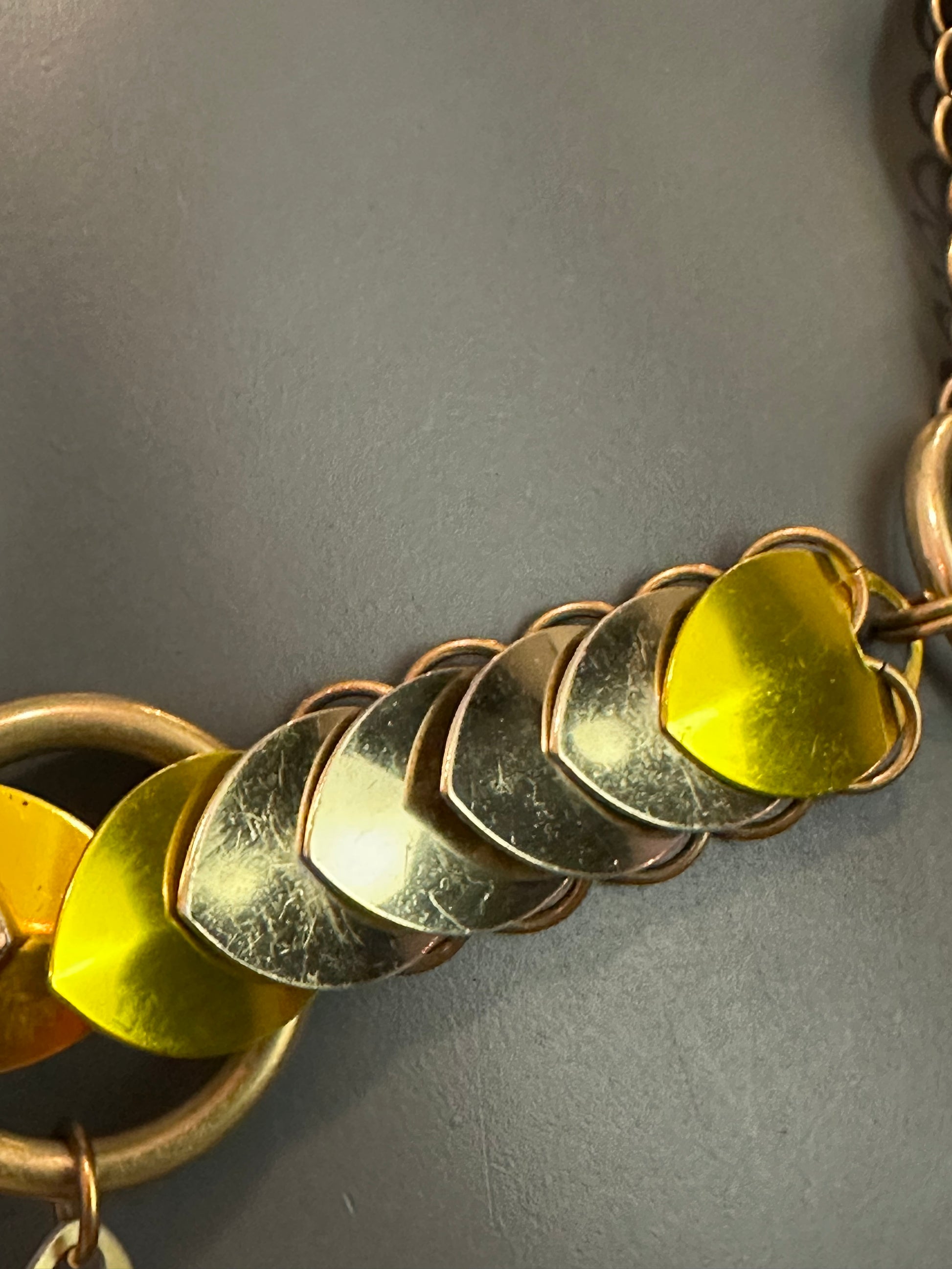 Wir präsentieren die Aphrodite Desire in Gold und Gelb ein wahrhaft besonderes Schmuckstück, das in jeder Sammlung hervorsticht. Dieses einzigartige Design besticht durch schimmernde, eloxierte Aluminiumschalen, die meisterhaft gefertigt wurden, um das Licht einzufangen und alle Blicke auf sich zu ziehen.
