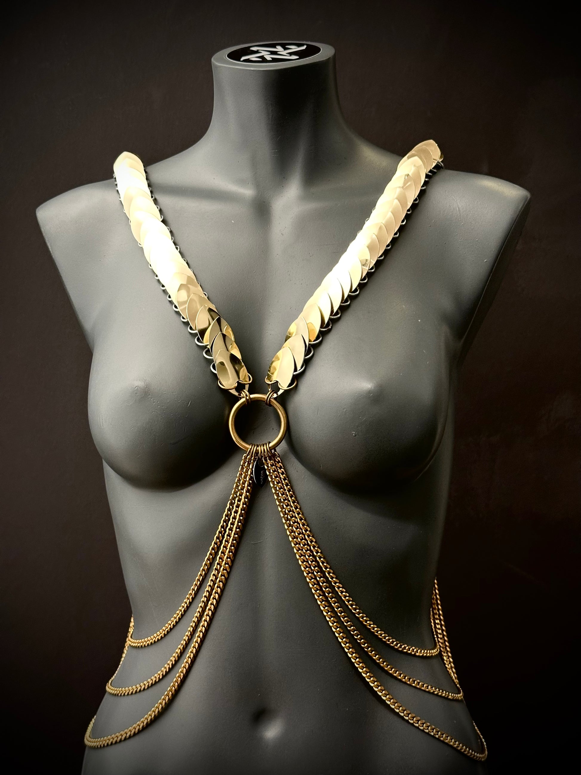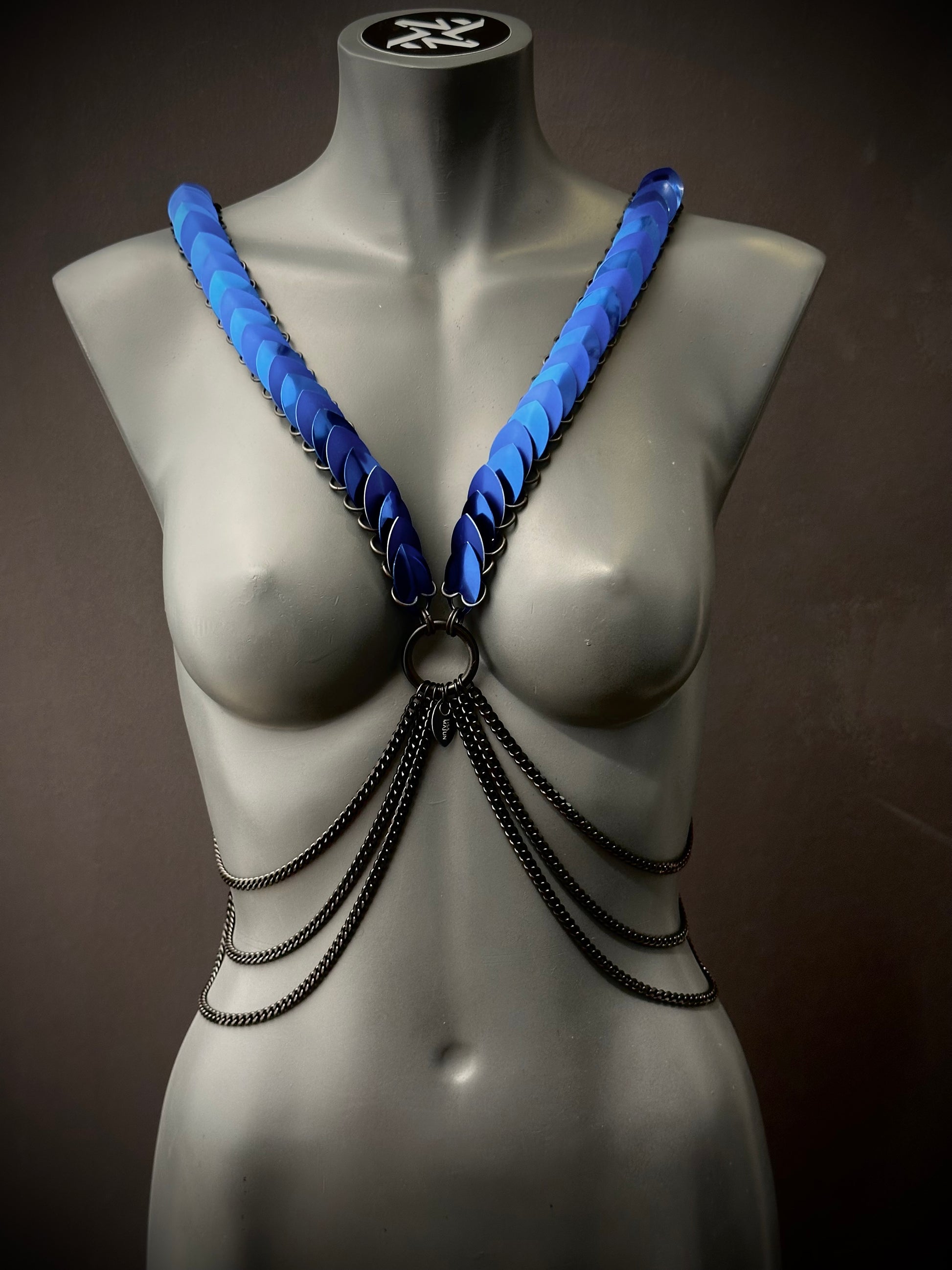 Das ARIV Harness ist eine kraftvolle Verbindung aus Stärke, Eleganz und Individualität. Handgefertigt aus hochwertigem Edelstahl und veredelt mit großen, eloxierten Aluminiumschuppen verkörpert es Selbstbewusstsein und einen modernen, markanten Look in jedem Detail.