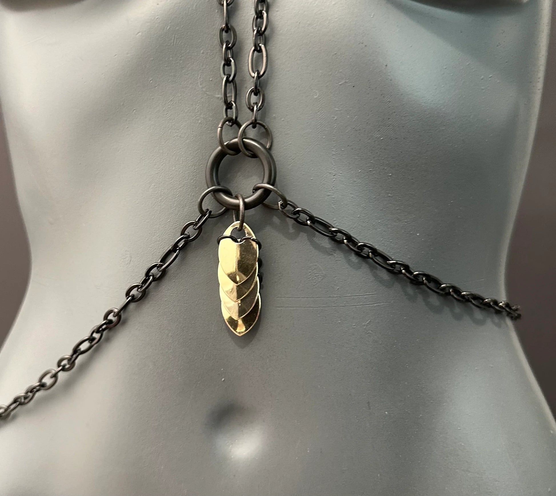Die FREYJA Chain ist inspiriert von Freyja der Göttin der Liebe, Sinnlichkeit und Stärke. Diese außergewöhnliche Bodychain vereint verführerische Eleganz mit kraftvoller Präsenz und steht für eine selbstbewusste, feminine Ausstrahlung.
