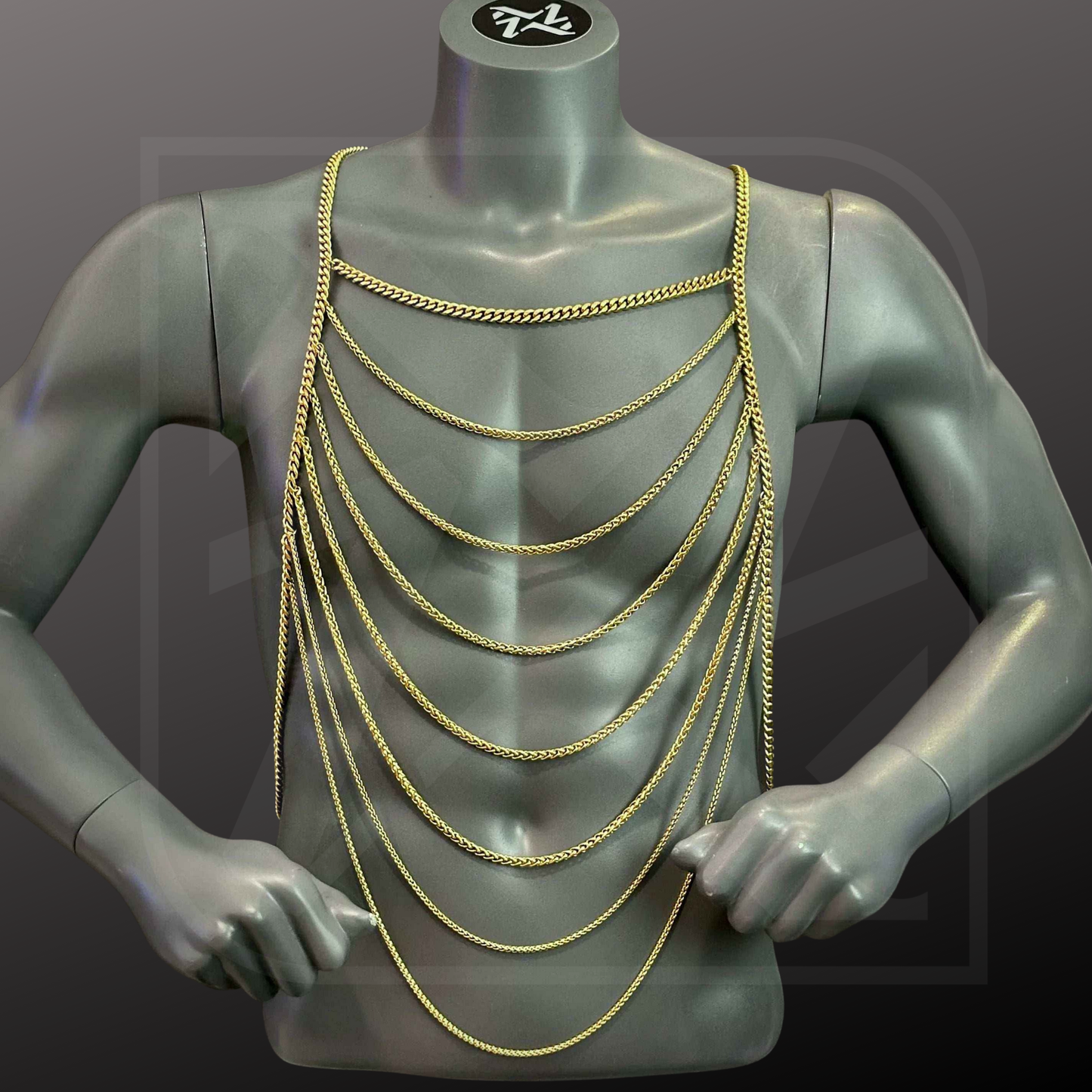Männer tragen gerne die Ketten auf der Haut oder über ein netz Top.