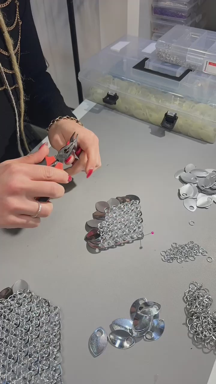 Armor Harnesses sind das perfekte Statement-Piece für Festivals – trage sie über ein mesh shirt, Bralette oder solo auf der Haut. Scale Tops funktionieren als eigenständiges Oberteil und brauchen nur High-Waist Bottoms. Beide Styles passen zu Burning Man, Fusion, Melt oder Garbicz und viele mehr, und verleihen dir einen skulpturalen, futuristischen Festival-Look.