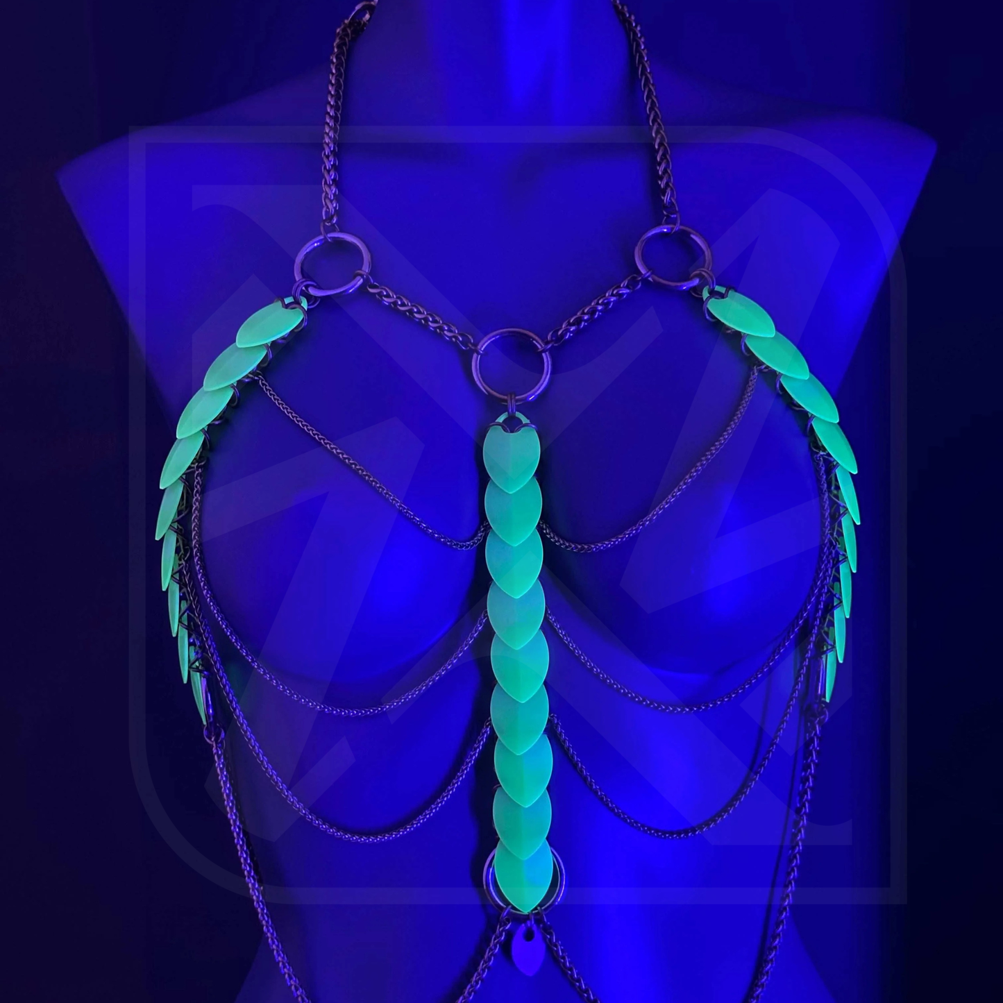 Unsere Glow Harnesses sind mehr als Accessoires – sie sind leuchtende Skulpturen, die deinen Körper in Szene setzen. Die geometrischen Designs umschmeicheln deine Silhouette und werden unter Schwarzlicht zum absoluten Hingucker. Perfekt für Raves, Techno-Partys, Festivals, Burning Man, Fotoshootings oder als mutiges Statement auf Nacht-Events. Die verstellbaren Konstruktionen passen sich individuell an und bieten höchsten Tragekomfort – auch beim Tanzen bis zum Morgengrauen.