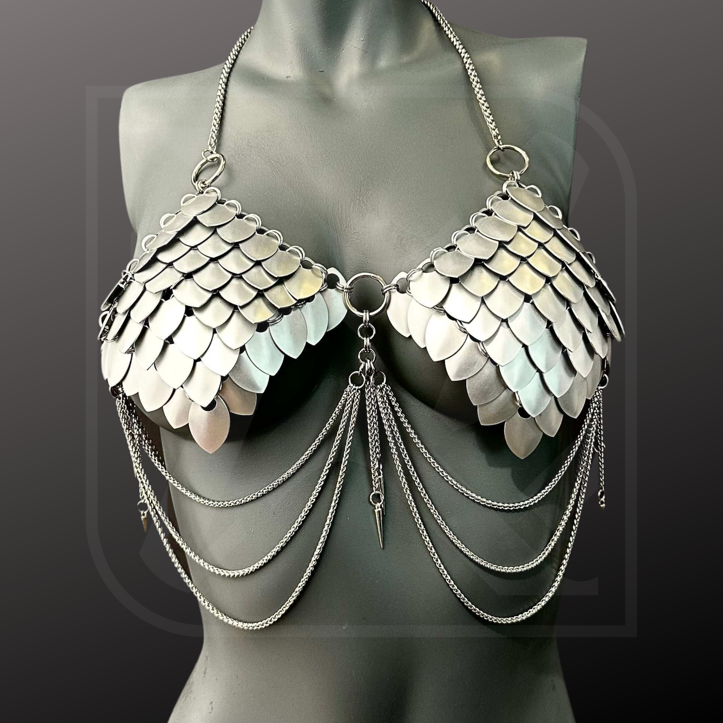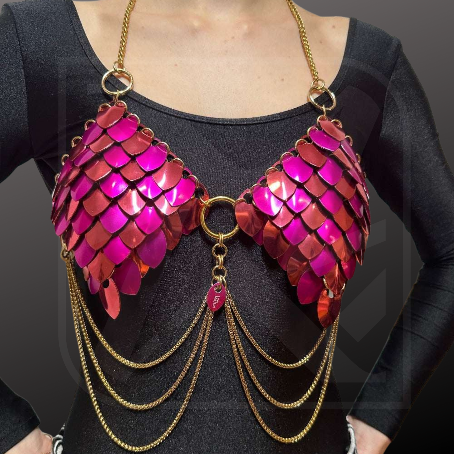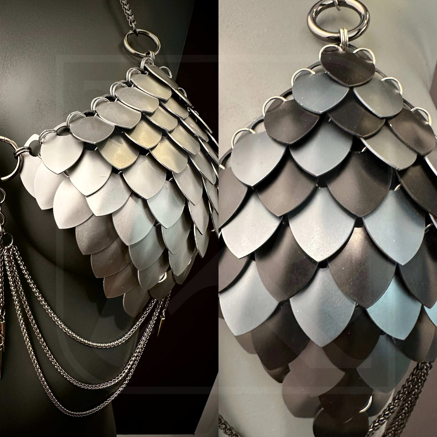 Ein ausdrucksstarker Scale Top aus leichten Aluminium-Schuppen, der Eleganz und Performance vereint. Das fließende Design schmiegt sich wie eine zweite Haut an den Körper und verwandelt dich in ein lebendiges Kunstwerk – perfekt für alle, die mutig und selbstbewusst auftreten.