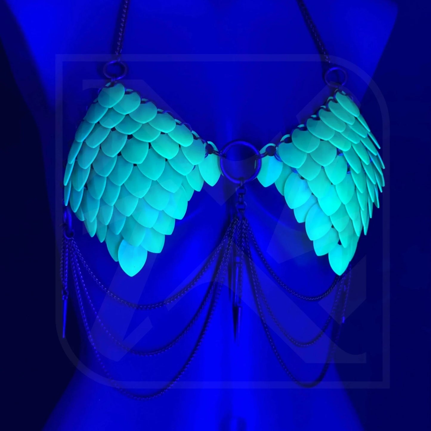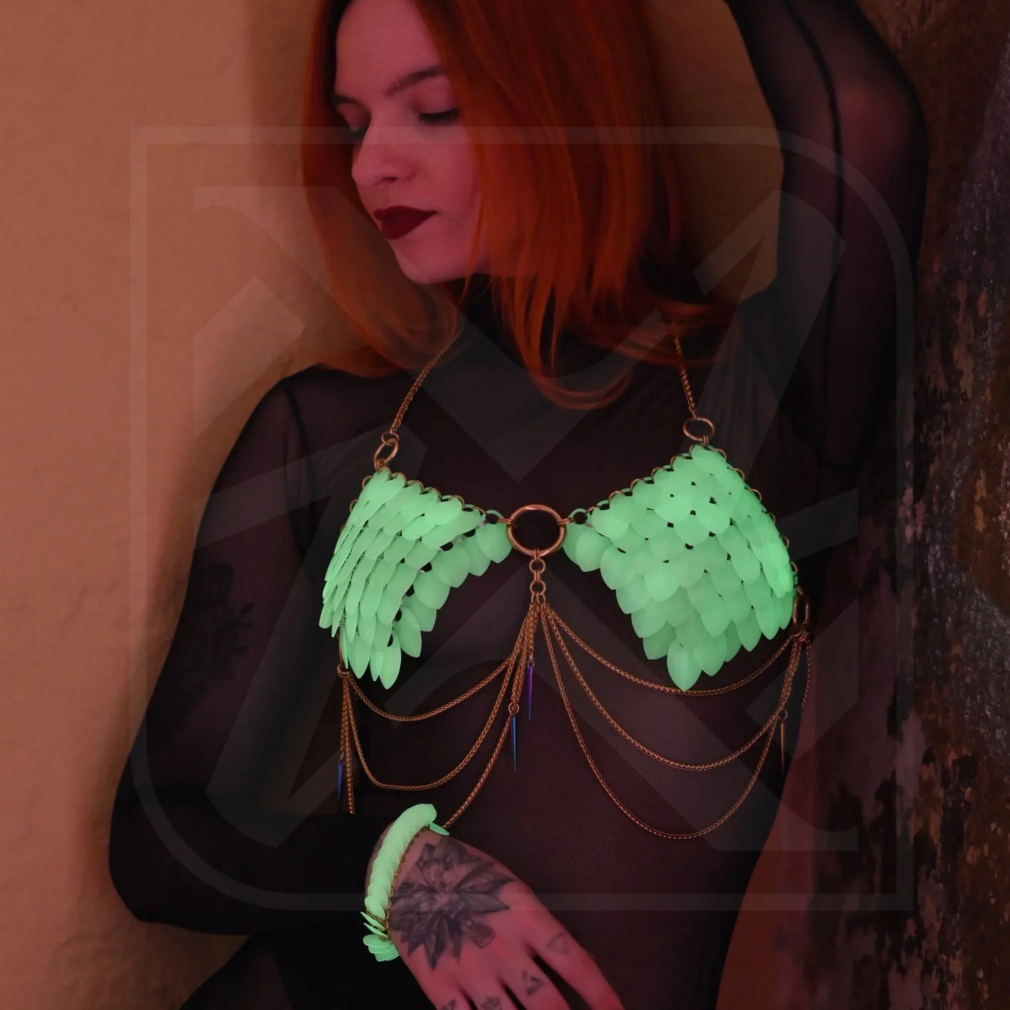 - Handgefertigter Scale Top aus Glow-in-the-Dark PVC-Schuppen