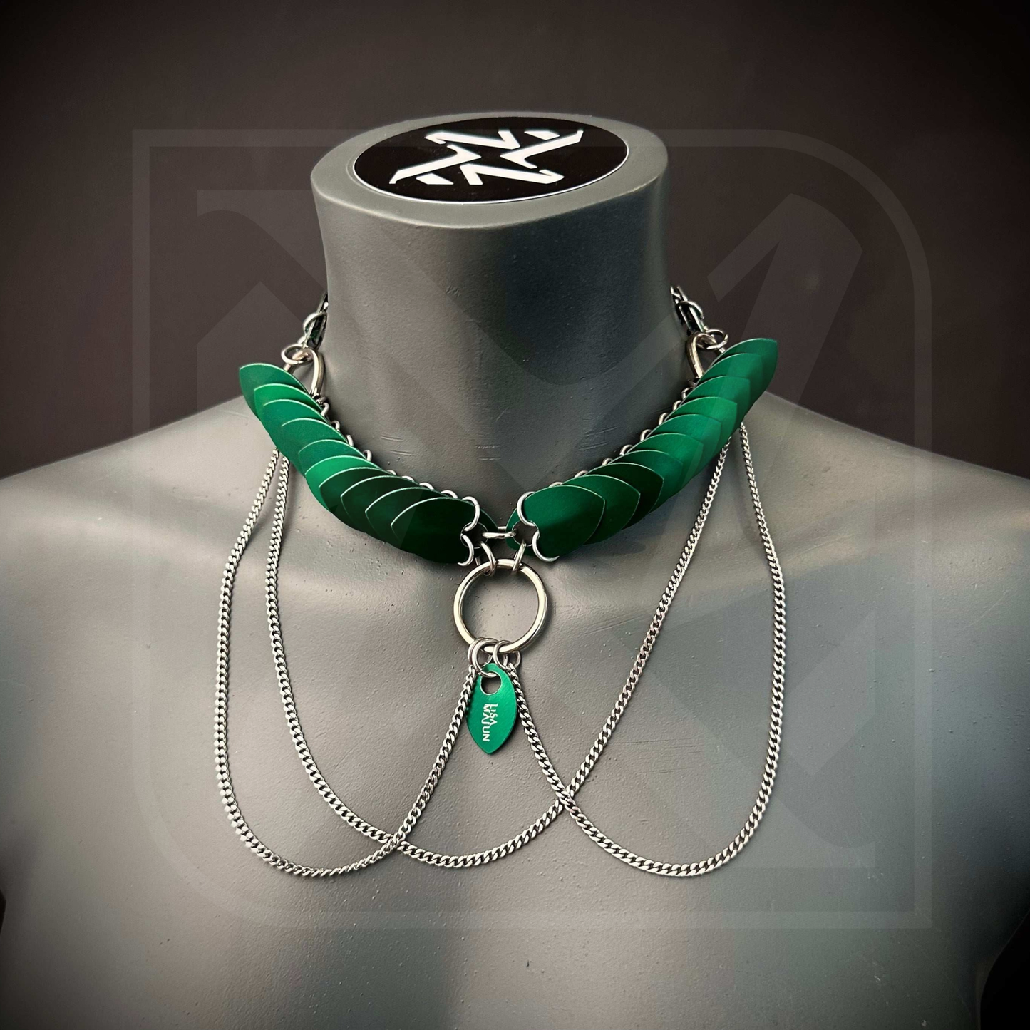 Regulärer Preis €120,00Das Cleopatra Set – Last Chance ist ein seltenes, ausdrucksstarkes zweiteiliges Design, das zum letzten Mal verfügbar ist. Sobald diese Stücke vergriffen sind, werden sie nie wieder in dieser Form zurückkehren. Handgefertigt in Berlin, besteht das Set aus einem auffälligen Choker aus M-großen Aluminium-Schuppen kombiniert mit einer Edelstahlkette und einem leichten Gürtel, der um die Taille getragen oder mit der mitgelieferten Verlängerungskette an der Hose befestigt werden kann.