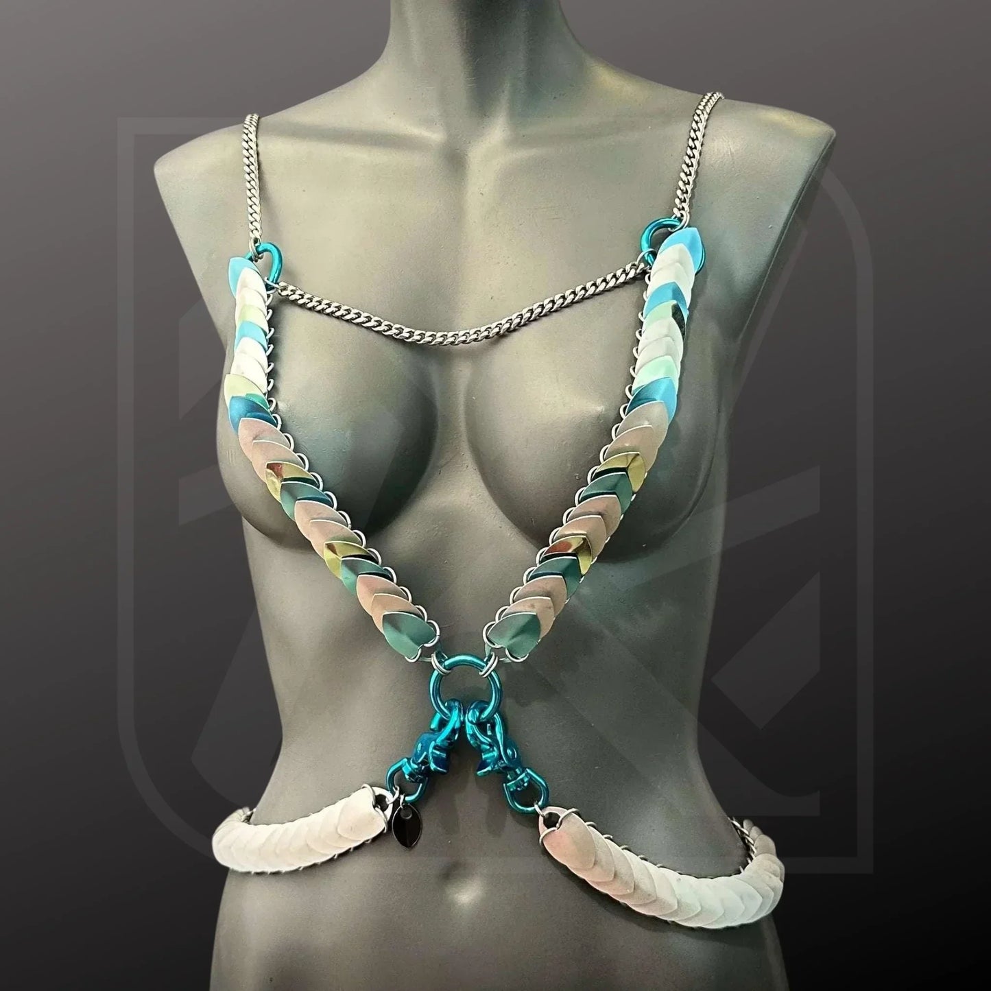 Designed für Vielseitigkeit – der Hera Harness kann auf mehrere Arten getragen werden und ermöglicht es dir, deinen Look mühelos für Festivals, Performances, Nachtleben oder gehobene Alltags-Stylings anzupassen. Die Edelstahlketten-Struktur fügt Langlebigkeit, Flexibilität und eine klare architektonische Linie hinzu, die das leichte Schuppen-Design ergänzt.