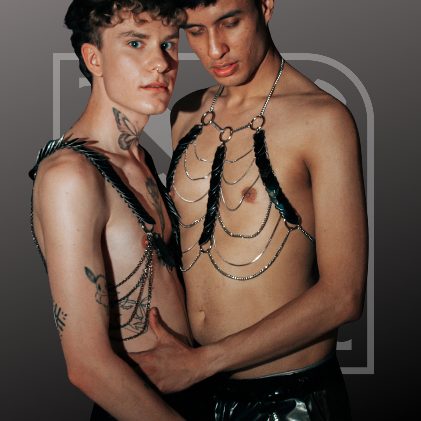 Ein handgefertigtes Statement-Piece, das mutige Struktur, fließende Bewegung und raffinierte Sinnlichkeit auf deinen Körper bringt. Gefertigt aus hochwertigem Edelstahl und verziert mit leuchtenden L-Schuppen in einer einzigen, markanten Farbe – dieser Harness kreiert eine kraftvolle Silhouette und bleibt dabei weich und fließend in der Bewegung.
